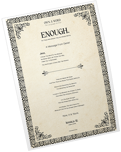 We all carry words that shape who we are. Some remind us to stay strong, some to stay kind, and some to stay free. Owning a word is more than a choice — it’s a quiet act of self-honor, a way of holding close what truly matters.